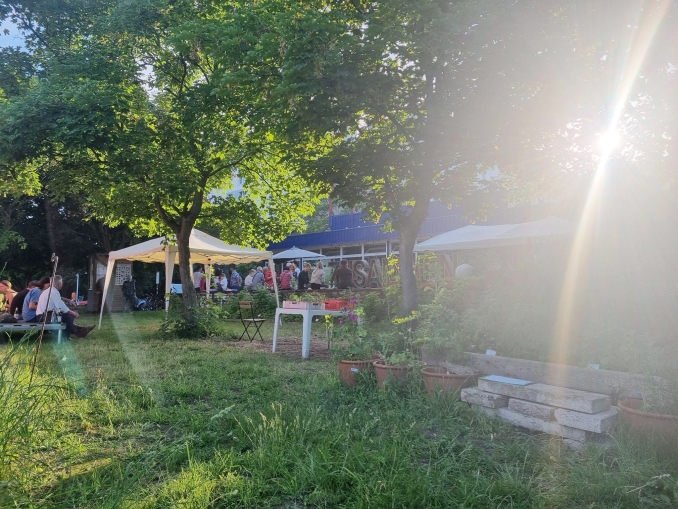 Im Peace of Land produzieren wir Lebensmittel, praktische Erfahrungen, Workshops und Kurse, Begegnungs- und Arbeitsräume, Erfahrung und Wissen sowie sowie Freude und Gemeinschaft. Wir tragen dabei zur Biodiversität in der Stadt und Klimaresilienz bei. Nach dem Verlust unserer Fläche am Weingarten 14 sind wir seit 2023 im Vorgarten der KulturMarktHalle angekommen und bauen hier unseren Gemeinschaftsgarten und Lernort erneut auf. Unsere Fokusthemen sind aktuell Waldgärten, Permakultur und Wassermanagement.