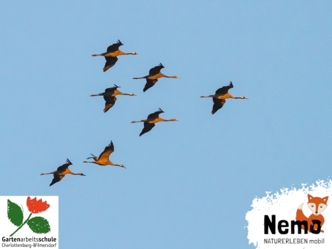 Bei dieser Nemo-Veranstaltung verwandeln wir uns in Igel, Füchse oder Eichhörnchen und spielen ihre jeweiligen Überwinterungsstrategien nach. In der grünen Oase der Gartenarbeitsschule Charlottenburg-Wilmersdorf suchen wir die besten Krötenverstecke und fliegen wie die Zugvögel Richtung Süden. Im Anschluss überlegen wir gemeinsam, wie die Tiere in der kalten Jahreszeit unterstützt werden können.